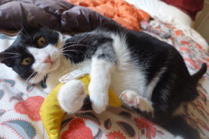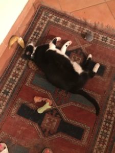 Or how about receiving a fresh-filled nip toy (a gift from Mya, thank you, Mya) and rolling-stoned around on the rug with it daring ANYONE to try to take it away and PLAY with it.