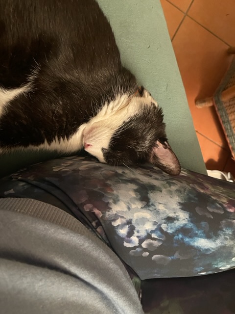 Staying put is where I want to be. But I hope my Kitty Whisperer lets me sleep against her leg. This the trip I wish to be on, haha.