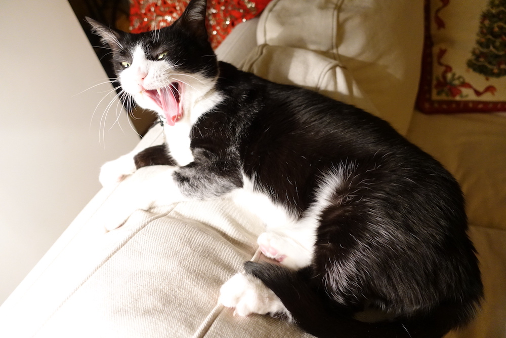 Oui, and mama has put my nice little heating pad next to where I sleep so I can choose it or just sleep where I usually do, but I do love between the knees best.