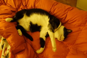 Petcretary made a vegan meal to make the unfurbro-the-elder happy…well, he had pretend turkey, and we had the real…wrapped in bacon, Mmmm!