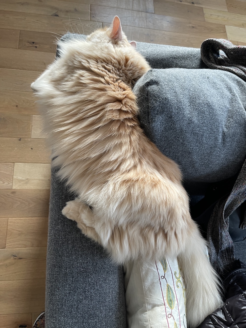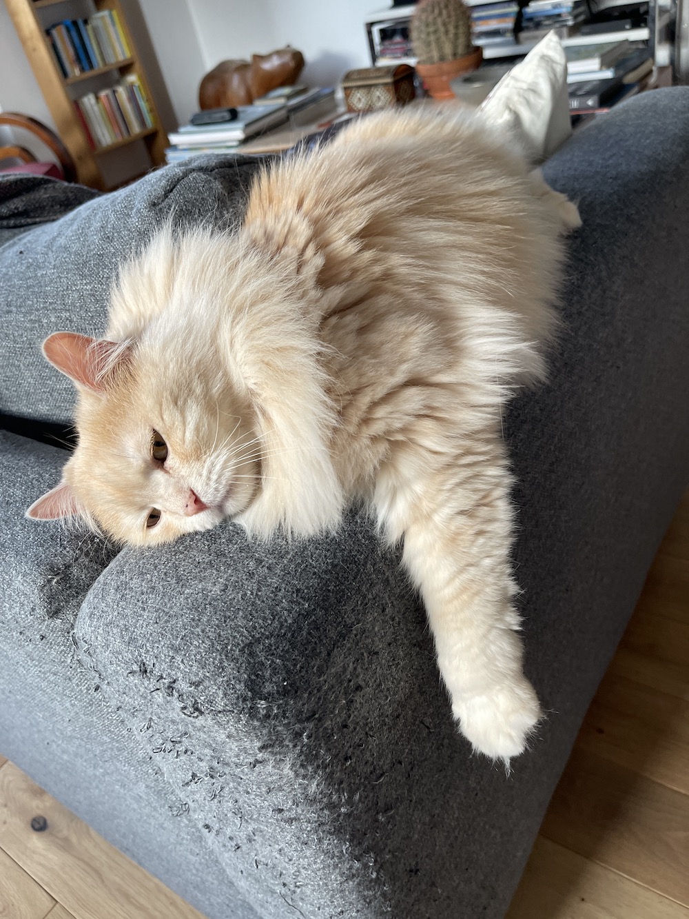 We are pretty sure your parents are only taking advantage of his presence because they miss you : “When I’m not near the cat I love/I love the cat I’m near” our huMom says.