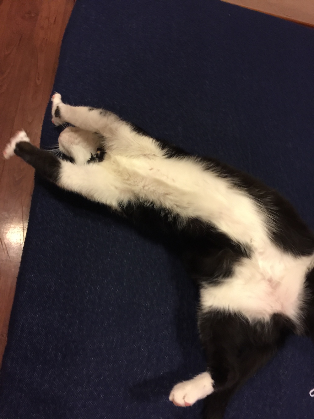 But he is 12 years old so maybe it’s okay that he sleeps a lot. Still, mama told me that at one point, Leo JUMPED off the couch like a kitten, and he has his own little laundry room kitty litter box suite!
