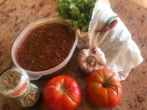 A great recipe from my Auntie Lynne’s brother: 2-3 ripe tomatoes, 1 yellow onion, 3 cloves garlic, a nice handful of fresh coriander, the juice of a lemon, 1 small red chili and if very hot, use half, a grind or two of white pepper and salt to taste.