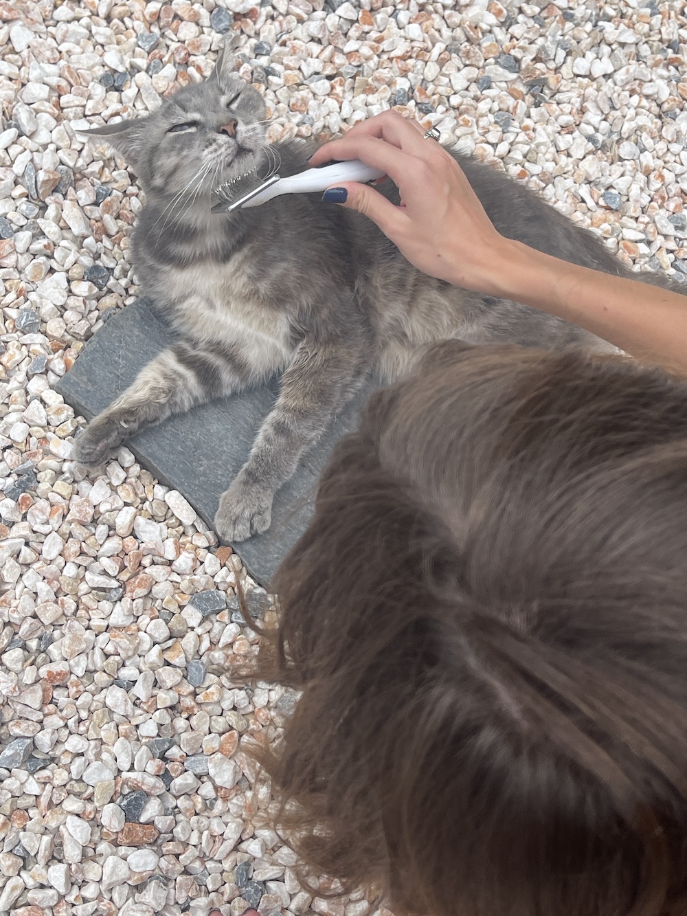 MAIS OUI! He loves his brushing and his jaw-rubs.