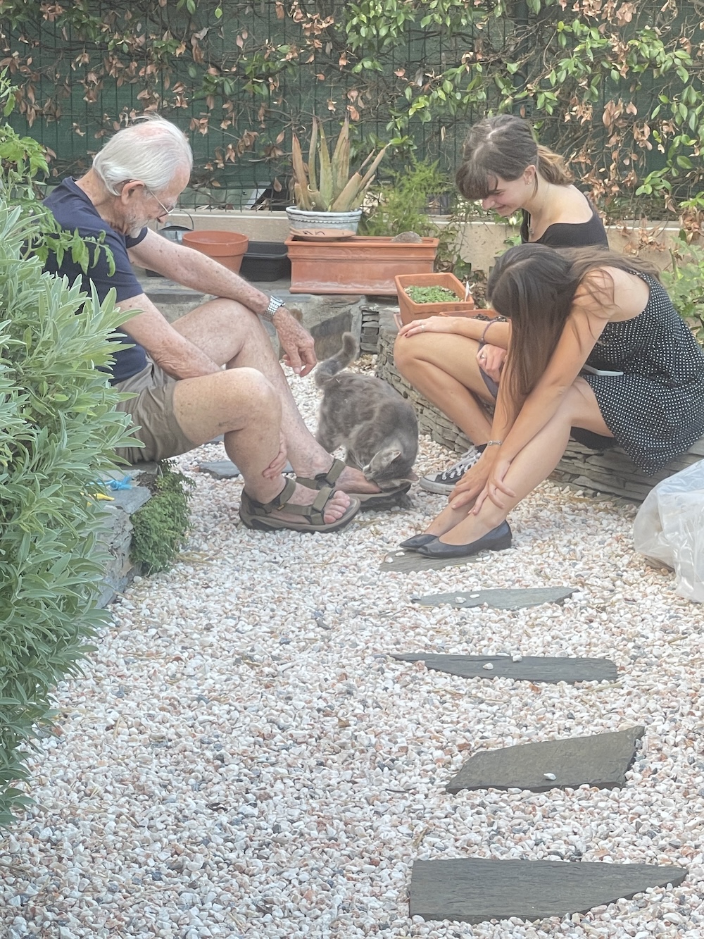 But the step-grandkids are giving him LOTS of attention….and one is an expert kitty-handller. We’ll see what develops.