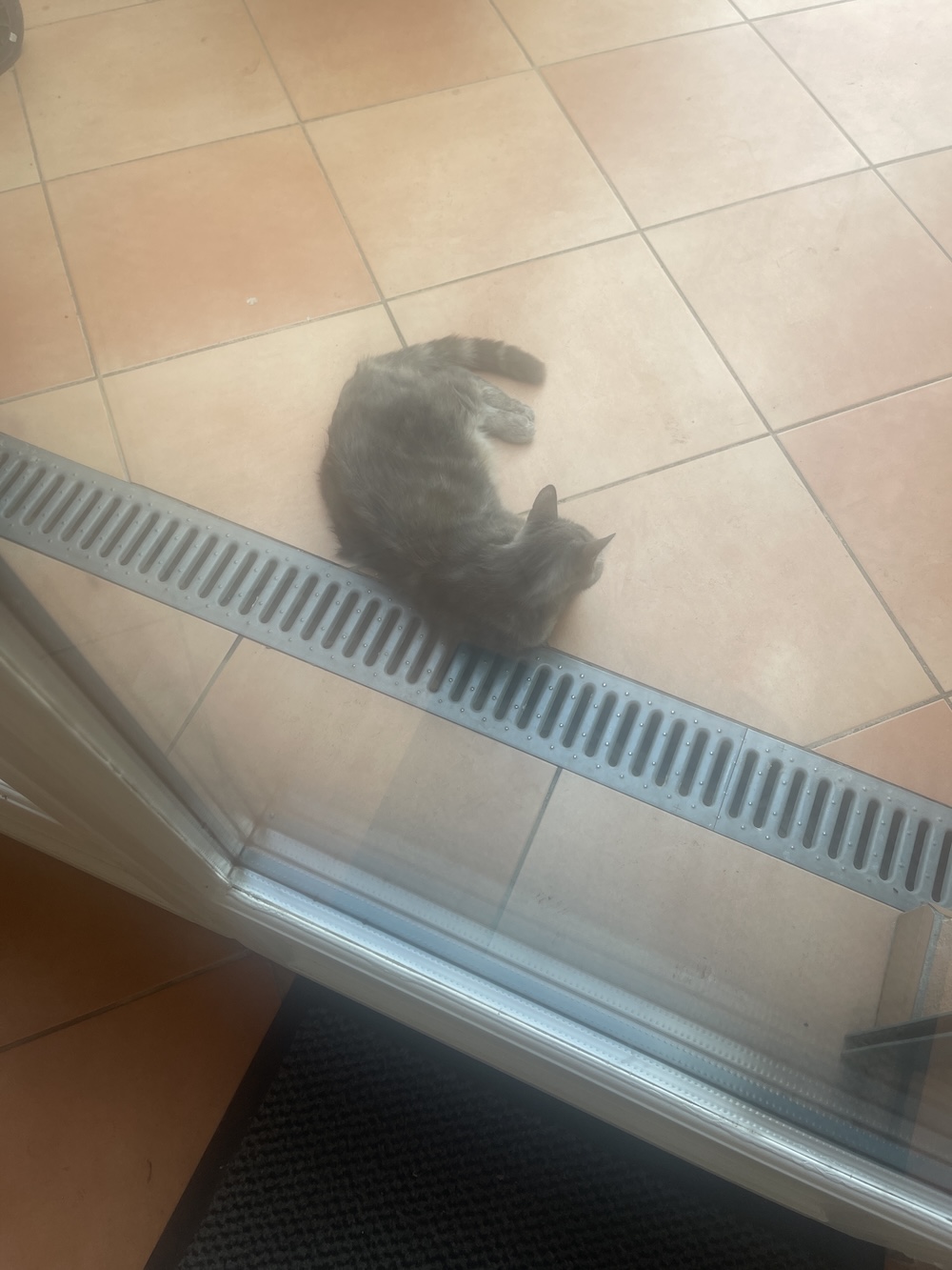 Uh, oh, soccer match tonight, seven for roast chicken and  potato salad, and Rasta still wandering around outside wanting snuggles. Mama is so ambivalent, whatever that means, about this kitty.