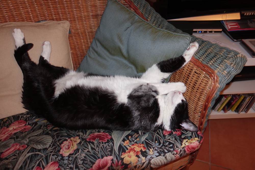We have noticed that you like that wicker chair – and we can’t blame you….it looks comfy and also a nice place to do a bit of snoozing and stretching!