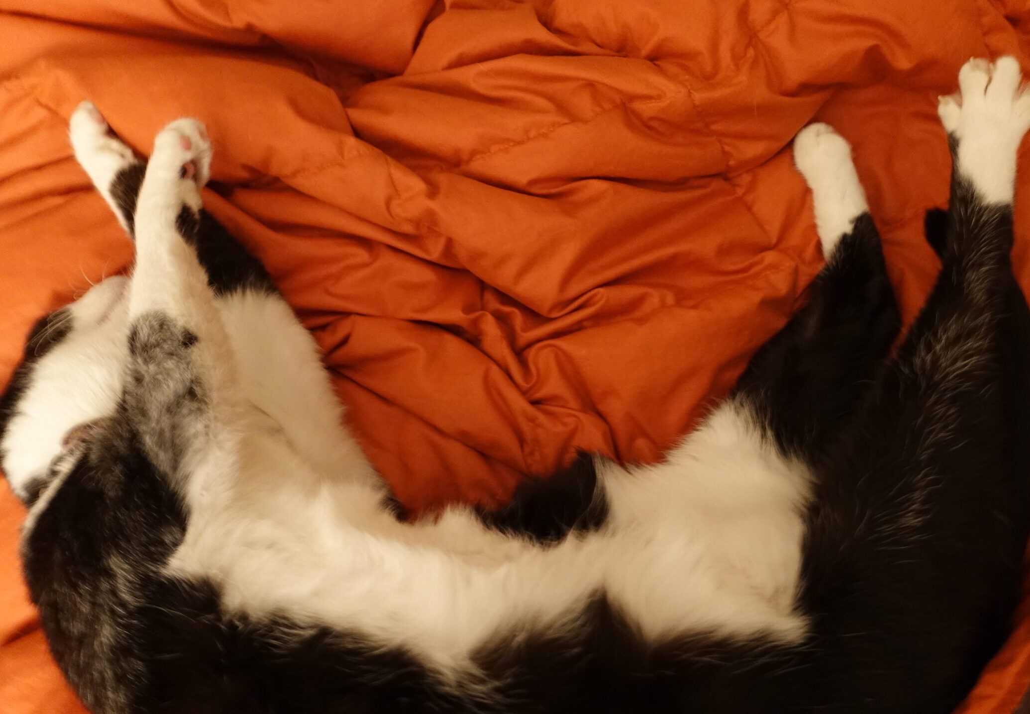 Pretty cloudy photo – some clouds carry rain which is great for cooling things down AND for the plants in our gardens! Our summer has so far been HOT and WET. Loulou you’re spending a hot day just like I do – – – napping!!