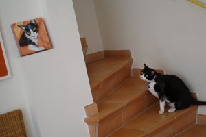 I am not looking at my portrait–I am getting ready to MEOW loudly before ascending the stairs!