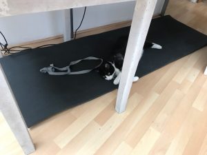 Well, mama is remiss in not giving me my outfit in which to exercise! I mean she has tights and tops and good big old sturdy fee…er…shoes with which she can jump and jive (and work off some of that anxiety I perceive lately in her normally calm nature, haha).